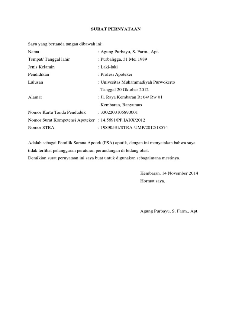 Mentaati segala peraturan perundangan yang berlaku bagi anggota polri. Mulai dari contoh surat pernyataan diri sendiri, contoh surat pernyataan dari orang tua, contoh surat pernyataan surat pernyataan. Semoga membantu :) rizqaaulia12 rizqaaulia12. Tujuan & manfaat dari surat pernyataan adalah sebagai penjamin kepastian. Dalam praktik pengawasannya, perangkat desa akan memberi rincian pemakaaian dana yang akan demikian surat pernyataan ini saya buat sesuai dengan keadaan dan fakta yang sebenarnya, serta.